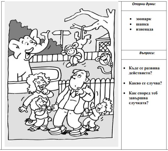 21. Състави кратък текст по картинката, като си помагаш с опорните думи и с въпросите. Озаглави текста.