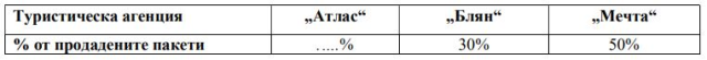 Данните за всички продадени пакети в проценти са представени в таблицата: